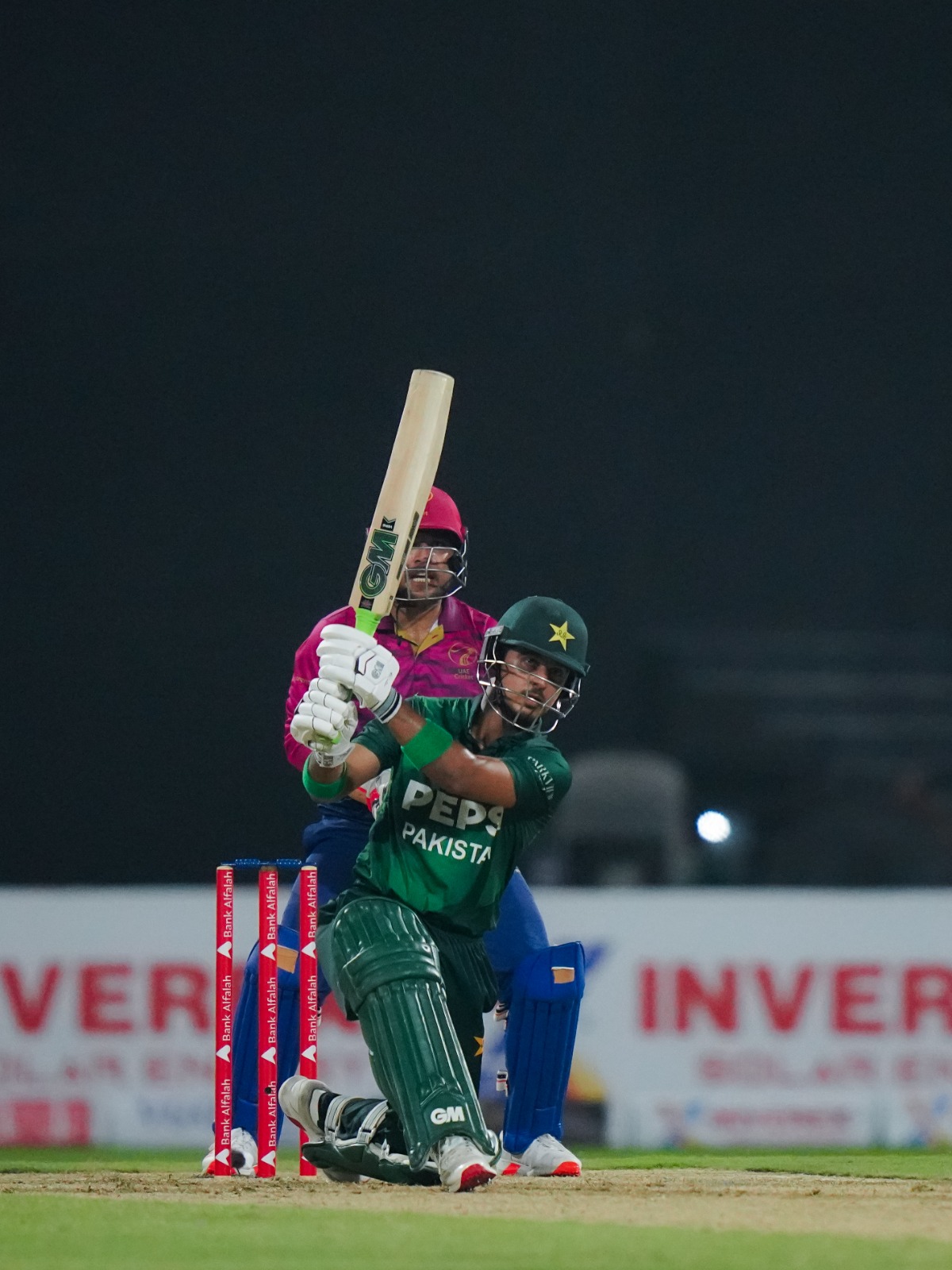 پاکستان نے پہلے بیٹنگ کرتے ہوئے 20 اوورز میں 207 رنز بنائے۔ صائم ایوب کے علاوہ نوجوان بلے باز حسن نواز نے بھی دھواں دھار اننگز کھیلی اور صرف 26 گیندوں پر 56 رنز اسکور کیے، جس میں چھ بلند و بالا چھکے شامل تھے۔ محمد نواز نے بھی 25 رنز کی مفید اننگز کھیلی۔