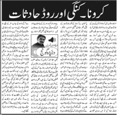 ملتان میانوالی روڈ جس پر روزانہ کی بنیاد پر درجنوں افراد زندگی کی بازی ہار جاتے ہیں اور عوام نے تو اسے خونی روڈ کا نام بھی دیا گیا یہی نام دیگر اضلاع کے لوگوں نے اپنی سڑکوں بھی دیا ہوا ہے جیسے انڈس روڈ ، مظفر گڑھ علی پور روڈ ، بھکر کلورکوٹ روڈ اور بھی بہت سے ہیں یہاں اگر ہم محکمہ ریسکیو 1122 کی روزانہ کی ڈائریز پر غور کریں تو ہمیں معلوم ہو گا کہ پاکستان میں کرونا وائرس سے زیادہ خطرناک ہماری یہ سڑکیں بن چکی ہیں ۔ لہذہ حکومت پنجاب اور پاکستان کو چاہئیے کہ جس طرح کرونا کے لئیے ایمرجینسی نافذ کی گئی ہے اگر اسی طرح محکمہ زراعت میں بھی ایمرجینسی نافذ کی جائے کسانوں کےلئیے ان محکموں کو فعال کیا جائے تاکہ کہیں کل ہمیں خوراک کی مشکلات کا سامنا نہ کرنا پڑے تو ساتھ میں ان سڑکات کی حالت زار پر کام کیا جائے تو کرونا جیسی مہلک بیماریوں سے ہم بہتر انداز میں لڑ سکتے ہیں