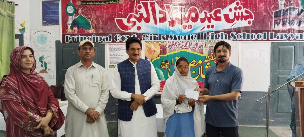 دینی مدارس میں اول محمد اسماعیل، دوم محمد عبداللہ جبکہ تقاریر کے مقابلوں میں حصہ مڈل میں اول محمدعزیز،دوئم محمدصائم،حصہ ہائی میں اول دوم سوم محمد ارسلان وزیر ،محمد راشد ،محمد بن اعجاز نے پوزیشن حاصل کی۔نعت میں ججز کے فرائض محمد عمران بریال، انورسعید قاری ،قاری لقمان ،قرت میں ججز کے فرائض قاری اسماعیل نظامی ،قاری طاہر علی نور ،قاری عبدالطیف باروی نے انجام دیے۔اس موقع پر ایڈیشنل ڈپٹی کمشنر جنرل شبیراحمدڈوگر نے اظہار خیال کرتے ہوئے کہاکہ عید میلاد النبیؐ کی تقریبات دراصل محبتِ رسول ﷺ کے اظہار کا بہترین ذریعہ ہیں۔ انہوں نے کہا کہ نوجوان نسل کو ایسی تقاریب کے ذریعے دین کی اصل روح سے آشنا کرنا وقت کی اہم ضرورت ہے تاکہ وہ برداشت اور بھائی چارے کے ساتھ معاشرے کی خدمت کر سکیں۔ انہوں نے مزید کہا کہ مقابلہ نعت، قرأت اور تقاریر نہ صرف بچوں میں اعتماد پیدا کرتے ہیں بلکہ انہیں اپنی صلاحیتوں کو مثبت انداز میں پیش کرنے کا موقع بھی فراہم کرتے ہیں۔