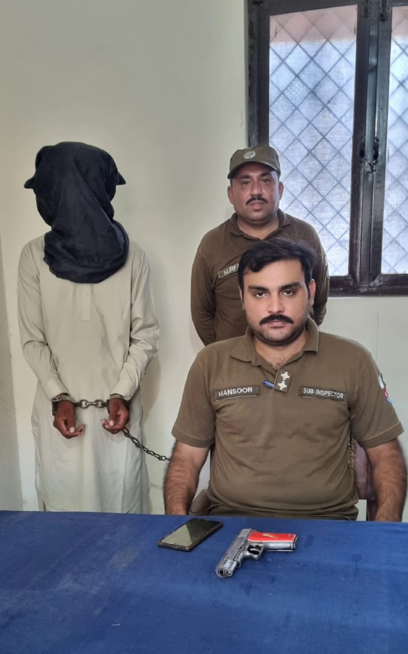 دوسری کارروائی سب انسپکٹر محمد ارشد دھت کی قیادت میں عمل میں لائی گئی، جس کے دوران ملزم حسن رضا کو گرفتار کیا گیا۔ ملزم کے قبضے سے بھی ایک پسٹل برآمد کیا گیا۔