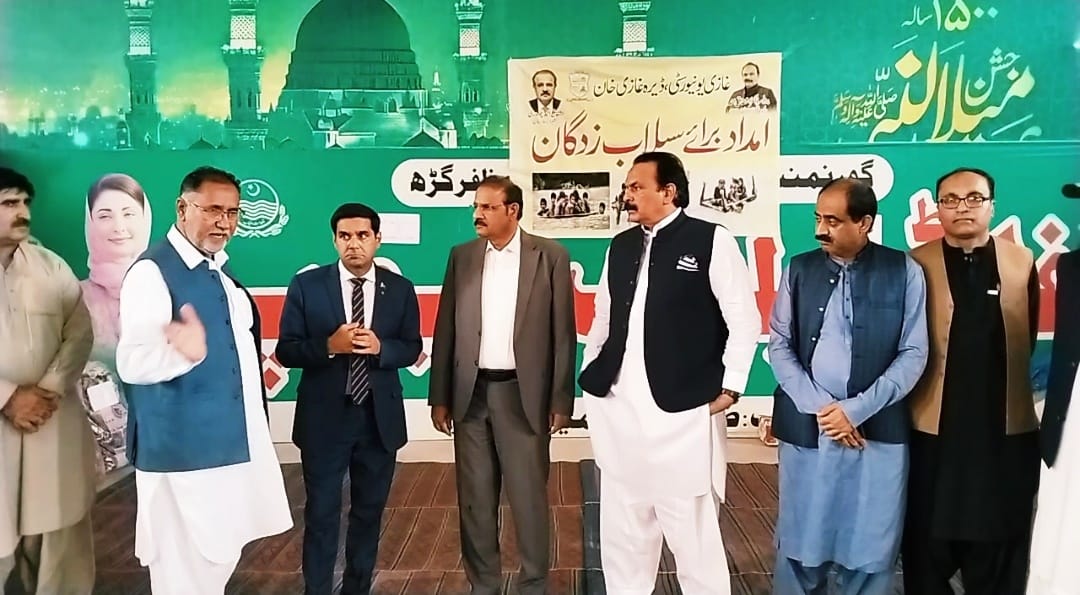کمشنر اشفاق احمد چوہدری نے متاثرین میں امدادی سامان تقسیم کیا جس میں لحاف، مچھر دانیاں، کپڑے، راشن اور دیگر ضروری اشیاء شامل تھیں۔ یہ سامان غازی یونیورسٹی کے طلباء، طالبات اور اساتذہ کی جانب سے خصوصی طور پر سیلاب متاثرین کے لیے جمع کیا گیا تھا۔