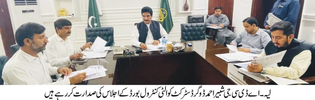 لیہ: ایڈیشنل ڈپٹی کمشنر جنرل شبیر احمد ڈوگر کی زیرصدارت ڈسٹرکٹ کوالٹی کنٹرول بورڈ کا اجلاس منعقد ہوا۔ اجلاس میں مختلف کیسز کا جائزہ لیتے ہوئے 5 کیسز پر وارننگ جاری کرنے، 7 کیسز کو ڈرگ کورٹ بھجوانے اور 3 کیسز کا دوبارہ معائنہ کرنے کے فیصلے کیے گئے۔